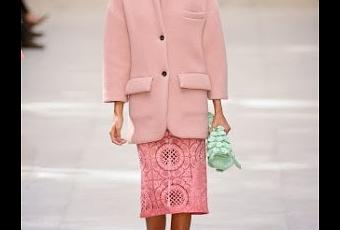 Colores como el rosa, verde y gris, combinan con medias de punto en algodón, carteras y bolsos que se mezclan con las prendas y marcan un estilo que recuerda los años 50.