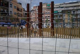 La obra hace semanas que aparentemente se han terminado, se ha instalado el moviliario urbano y se han hecho los juegos infantiles bajo los criterios que el ayuntamiento le ha transmitido y las necesidades que han comentado los vecinos. Durante esas semanas la plaza está inaccesible, con todo instalado, las farolas funcionando de noche y el espacio limpio de material de obra, etc… Sólo se mantiene las vallas alrededor con el cartel de la Generalitat que están reformando la plaza.