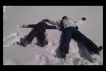 Lo sé, lo sé, parece el Papa besando el suelo.... él es así. Lo bueno es que la nieve ni estaba pisada, menos mal, nieve limpia.