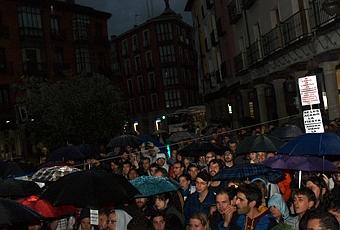 El cielo oscuro que lanzaba trombas de agua contra los asistentes no les frenó.Fotografías de Doc Pastor.Esta tarde la increíble tormenta que ha caído en Valladolid no ha echado para atrás a quienes han vuelto a salir a las calles con la intención de hacer noche en protesta sumada a las del resto de España.