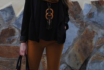 Buenos días!! Hoy vamos a compartir con ustedes un look muy, muy de Nuria. Es uno de esos que a ella le encantan porque va acompañado de accesorios. En principio, pensamos que no puede ser más sencillo, Skinny de color, camisa básica, blazer y stilettos. Podríamos decir que el outfit está completo para ir a trabajar, pero en este caso no es así. Para ella, un outfit no está completo sin unos buenos complementos. Los collares son su perdición, aunque tiene en su vestidor una pared entera en la que cuelgan pulseras, anillos, pañuelos, cinturones, etc.