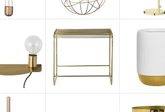 Lámparas, portavelas, cestos, botes, bandejas, espejos, artículos de cocina, macetas, mesas, papeleras, pequeñas esculturas, artículos de baño y muchos otros complementos se han reinventado en estos tres metales para cuadrar con el resto de la decoración. Artículos de líneas sencillas, que iluminan y aportan elegancia en casa.