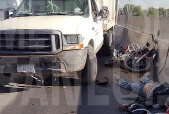 San Luis Potosí, SGS.– Un accidente severo tuvo lugar en Periférico, justo a la altura de la entrada al camino a Cerro de San Pedro. Según informes preliminares, un motociclista y su acompañante intentaron rebasar por la izquierda a un camión de tres toneladas, lo que resultó en un choque que dejó a ambos ocupantes de la motocicleta gravemente lesionados.