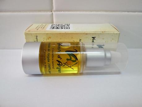 Yo tengo el aceite de argán de 30 ml, que se presenta en un packing sencillo, bonito pero muy práctico, gracias a su envase airless transparente.