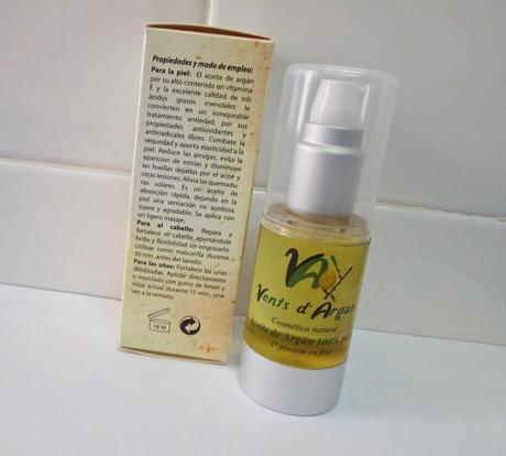 El aceite de argán que vengo a enseñaros, es de la marca "Vents d´Argán". Es una empresa creada por dos mujeres valencianas que se animaron a traer el aceite de argán de Marruecos, utilizando ingredientes de Comercio Justo y Solidario.