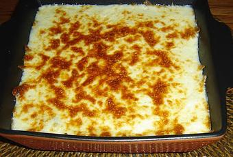 Colocarlas en una fuente apta para horno, cubrirlas con la salsa y con el queso rallado.