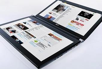 De hecho, el Acer Iconia tiene la apariencia de un portátil hasta que lo abrimos y descubrimos que no hay teclado físico, sino que este es virtual, mostrándose en una de las pantallas (se puede mostrar cualquier tipo de contenido). Y si hablamos del interior, nos daremos cuenta que estamos ante un portátil, puesto que el Iconia incluye un procesador Intel Core i5, 4 GB de memoria RAM, disco duro de hasta 640 GB, cámara web, tres puertos USB, conectividad WiFi/3G y Bluetooth.