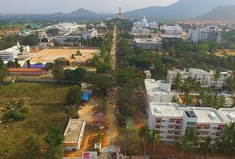 The Divine will prompted him to choose Chikkaballapur taluk, the town through which Swami passed whenever he travelled between Puttaparthi and Whitefield. Soon a committee was formed and suitable piece of land was identified in the vicinity of Muddenahalli, the birthplace of the renowned Engineer-Statesman, Bharatha Ratna Dr.M.Visweswarayya. This place is about four miles to the southwest of Chikkaballapur, and is located in a panoramic setting at the foot of the chain of Nandi Hills.