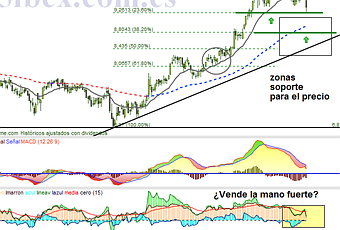 La media móvil que utilizo aquí para mis análisis es la de 90 días, siempre que el precio se acerca a la media móvil, está en valor, o sea se puede comprar, y cuando se aleja en teoría habría que tomar beneficios, por que está sobrevalorado.