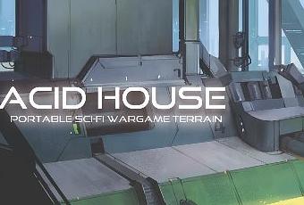 Acid House Terrain es una compañía que se ha especializado en un tipo muy concreto de escenografía modular para wargames de ciencia ficción, tanto para juegos de escaramuzas como de batalla, que creo que es la mar de interesante: Hacen escenografía portátil y plegable de cartón impreso y a color, que se puede montar y desmontar entre partidas para guardarla mejor, porque no usa ni pegamento, ni clips, ni nada similar. Se despliegue,se encajan las piezas que se quieran para la partida, y luego se vuelve de desmotar, plegar y guardar.Un sistema interesante,al menos para mi, porque con algo así podría tener una buena mesa de juego rápidamente, resistente y efectiva. Ademas,como son impresas a color, no necesario pintar ,lo que te permite ahorrar dinero, material y tiempo.