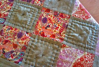 El acolchado es una parte esencial del quilt que cambiará totalmente su aspecto según lo hagamos de una forma u otra: a mano o a máquina, en las costuras o paralelo a las mismas, decorativo con uno u otro dibujo,...