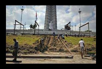 La emblemática Plaza de la Revolución de La Habana se prepara ya para acoger la misa al aire libre que el papa Benedicto XVI oficiará en la capital cubana el día 28 de marzo, como colofón de su visita a la isla. hace unos días comenzaron a levantar la estructura de la escalera y el estrado principal ubicado delante del monumento al prócer independentista cubano José Martí.