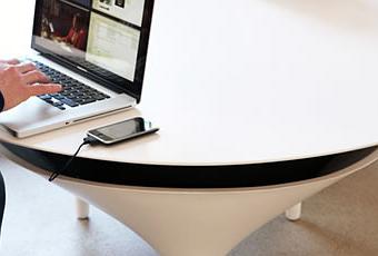Los diseñadores belgas Jérôme Spriet y Wolfgang Bregentzer, con un concepto más contemporáneo y acorde a las últimas tendencias, crearon “Acoustable”, una mesa de café que en su interior alberga un sistema de sonido con altavoces TEAC.