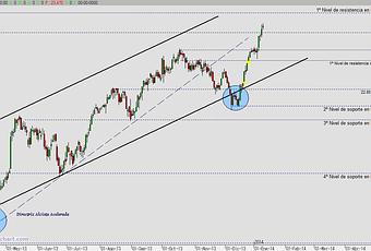 Primer nivel de resistencia significativo en niveles de 27.40 euros y principal apoyo de corto plazo sobre los citados 25.1x euros. Gran verticalidad en la última subida que dificultará con creces cualquier operativa por parte de los inversores.