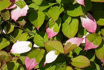 Aunque pertenece al mismo género de las plantas productoras de kiwis, no tiene más semejanza con ellas que su carácter sarmentoso y la común procedencia oriental. Ambas plantas crecen en amplias áreas de China; la actinidia ornamental lo hace además en Corea y Japón. Posee largos tallos, de tres metros o más, que se ramifican generosamente, por lo que es capaz de cubrir bien cualquier muro o pared, ayudada por un entramado de alambre o una celosía de madera a los que sujetar sus volubles tallos.