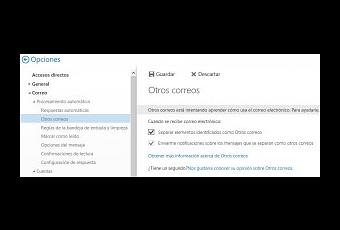 Allí nos encargaremos de marcar la casilla “Separar elementos identificados como “Otros correos”. Sí lo deseamos podemos seleccionar o deseleccionar la opción que indica “Enviarme notificaciones sobre los mensajes que se separan como otros correos”.