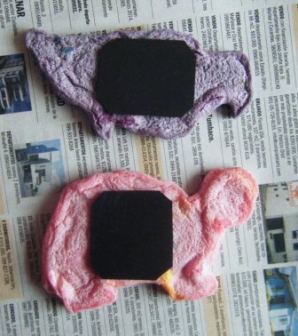 2.- Imanes para la refrigeradora o neveraMateriales:- figuras de plastilina casera.- pedazo de imám- goma o silicona- témpera- pincel1.- Pintar los detalles de las figuras de plastilina con témpera y pincel.2.- En la parte posterior, pegar con silicona o goma el imán.