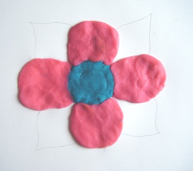 3.- Cuadro de florMateriales:- plastilina casera de colores- goma- lápiz- cartulina1.- Dibujar a lápiz una forma flor grande.2.- Untar goma en la forma y rellenar con plastilina.