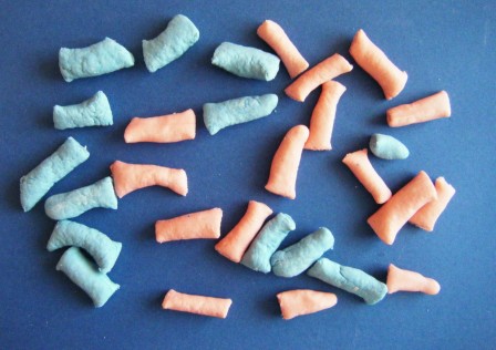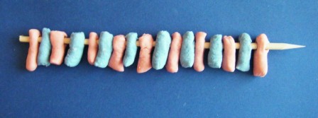 3.- Ensartar los pedazos en palo delgado, alternando el color