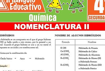 Este material educativo contiene actividades de Actividades de Nomenclatura II que ayudaran a los estudiantes de Cuarto grado de Secundaria en su aprendizaje. Ahora te mencionaremos algunas de sus actividades: