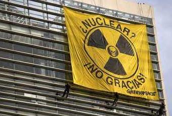 Greenpeace exige el abandono de la energía nuclear y propone una transición hacia energías limpias y renovables como la eólica.