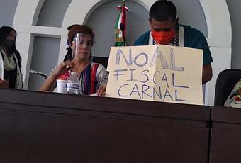 En contra de la misma autoridad también se presentó la ciudadana Teresa Carrizales , quien era oficial del Registro Civil y la cual había sido violentada en su trabajo por órdenes de Xavier Nava. Le acompaña una de las comerciantes que fue retirada de forma violenta el año pasado a un lado del Teatro de la Paz, también por el Gobierno Capitalino. Ambas piden juicio político contra Xavier Nava por violencia de género.