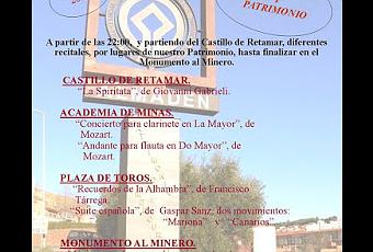 Hoy 1 de julio 2016, a las 22:00 horas y partiendo del Castillo de Retamar, diferentes recitales en lugares de interés patrimonial, hasta finalizar en el Monumento al Minero.