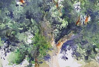 Poco hay que decir acerca de los materiales, casi siempre los mismos. Varios en Garzapapel, de los restos que me quedan y otros en Fabriano de grano grueso, en formato mayor. Mis colores de siempre. Los verdes con jadeíta de Daniel Smith, perileno y cada vez más mezcla de esmeralda. Las combras voy cambiando entre el violeta de amatista o la Sodalita de Daniel Smith. Cierto que, como me gusta mucho el índigo, como el cerúleo, cuando son buenos y se me acabó el de Kremer, compré para probar un tubo de índigo natural, de indigotina de una marca italiana que no conocía "Nica Colori". Muy bueno. Y caro.