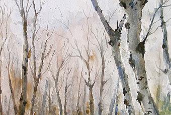 Algunas veces se recurre a una paleta clásica, con sus sienas natural y tostada, tonos quebrados mezclándolas con ultramar, incluso utilizando con infinito cuidado el viridian o esmeralda, únicvo verde de muchos acuarelistas clásicos, un verde tan hermoso como lleno de peligros, casi hiriente si se usa solo, sin matizar con los otros colores usados en la acuarela, pero que aporta un cromatismo que ning´ñun otro verde ofrece. En estos casos, como es la siguiente acuarela de la Ribera del Júcar en Albacete, prácticamente se utilizan solo esos cuatro colores.