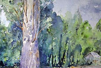 Estas son las acuarelas de este mes, gran parte de ellas eucaliptus autralianos. Elijo a menudo estos árboles por la corteza de sus troncos que, a menudo, tienen zonas blancas. Jugando con las luces y las sombras y con su textura se consigue aportar mucha luminosidad a las acuarelas.