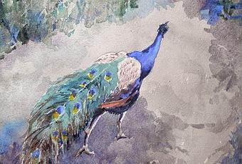 Pavo real - Acuarela sobre Garzapapel