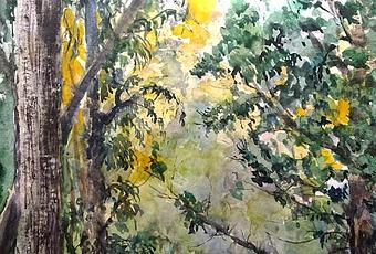 Estas son las acuarelas de este mes. Menos que de costumbre, que he tenido mucho trabajo con otras cosas. Árboles, ¿qué mejor? Jugando con las texturas, las luces y las sombras. Recurro a menudo al verde esmeralda, un color que procuraba evitar por sus peligros. lo alterno o mezclo con sap green y el verde de jadeíta, muy similar, pero que granula mucho. Los troncos, con siena tostada mezclada con ultramar, toda una gama de tonos desde el más cálido a los más fríos y agrisados.