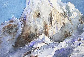 Durante estos días he pintado algunos limones, montañas nevadas, árboles, paisajes y flores, es decir, las cosas que me gusta pintar y ver. Los pigmentos de siempre de Daniel Smith y, preferentemente, mientras me quede, Garzapapel. De vez en cuando echo mano de las acuarelas de Kremer, White Nights o Rosa Gallery. Lo único que, por nuevo, merece la pena ser contado es que, en mis exploraciones acerca de la textura y la granulación, utilizo cada vez más en los troncos de los árboles la técnica de dar rápidos brochazos con poca agua en el pincel, de arriba abajo, que dejan un granulado manchando sólo las crestas de las rugosidades del papel, que no son demasiadas. Una vez seco, doy veladuras superpuestas con los colores muy diluidos, de forma que no se tapa ese granulado previo, cosa que añade bastante textura a los troncos. En una próxima entrada lo explicaré con ejemplos y más detalles.