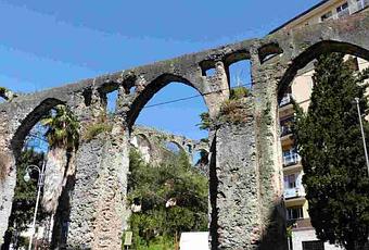 El acueducto canalizaba en tres niveles y sus restos han quedado hoy insertados en el centro de la ciudad formando parte del paisaje urbano.