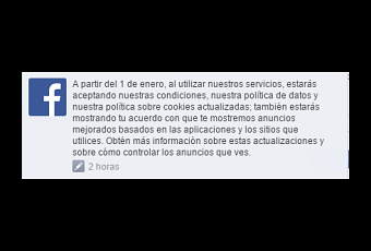 Seguro que muchos de vosotros en estos días, habéis recibido este mensaje, en el que Facebook nos indica que a partir del 1 de enero va haber cambios en su política de datos. También habréis visto que algunos usuarios están escribiendo en sus muros una serie de mensajes, supongo que con el fin de que los administradores de Facebook lo lean, manifestando su oposición, pues bien, este no es el camino correcto, y hoy os voy a ayudar para que podáis realizar unos sencillos cambios en la configuración de vuestro perfil que os permita, dentro de lo que se pueda, evitar que vuestros datos y contenidos pasen a las empresas con la que la red social opera.
