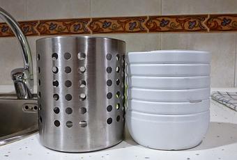 Cuando termino de fregar a mano, tengo la costumbre de secar y guardar, es decir, no espero a que los cubiertos se sequen al aire.Y el escurridor del IKEA no me resultaba cómodo porque en la base tiene los mismos agujeros enormes que decoran el resto del escurridor y no tiene nada debajo que recoja el agua, de modo que se me mojaba la encimera. No le veía la utilidad... Qué se me ocurrió?
