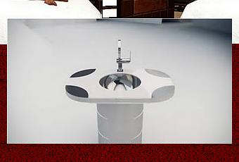 El mueble del lavabo está realizado en acero inoxidable con un diseño minimalista; responde a la estética de lo que se conoce como “lujo joven”: uso de determinados materiales, orden y belleza.