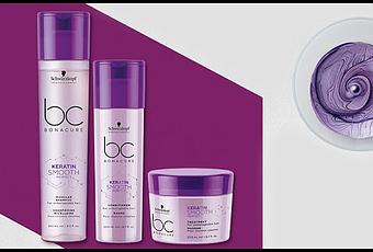 BC Keratin Smooth Perfect, la nueva gama de productos capilares de Schwarkopf Professional que promete controlar los cabellos gruesos, rizados y encrespados gracias a su fórmula frizz-control, consiguiendo lavado tras lavado, controlar el encrespamiento además de lograr que el pelo quede más suave, con más brillo, hidratado y fácil de peinar para siempre.