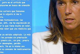 Adiós Ana, el que suscribe estas pocas líneas se alegra de que de una vez por todas te vayas, me alegro porque desde el día que oí un accidentado discurso tuyo, que de buen seguro se puede encontrar en la red, haciendo referencia al mérito de tu partido en la universalización de la sanidad pública que he sentido vergüenza ajena de tener una ministra como tú. Adiós Ana, recoge todas tus cosas, sal rápido y no cierres la puerta porque tal vez dentro de poco te acompañe algún otro compañero de partido.