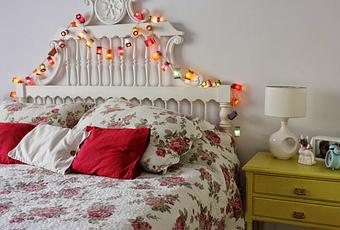 Para terminar, no queríamos olvidarnos de este cabecero que redecoramos con malla de gallinero. Un soporte perfecto para personalizarlo, como con estos pequeños camafeos.
