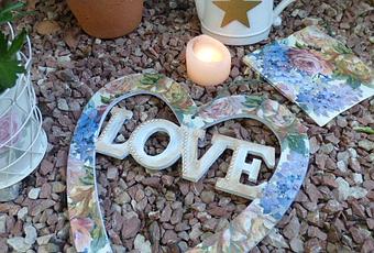 Las 4 letras LOVE las he sombreado con la cera al óleo de color Bitún, un tostado muy bonito que vá ideal para dar el efecto de pátina tostada