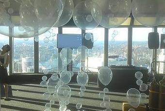 Vemos esta primera idea de arreglos con estos globos transparentes los cuales han sido inflados con helio y se han hechos unos racimos con ellos, vemos que los globos son de distintos tamaños, estos también son usados como globos gigantes para fiestas.