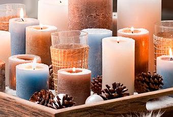15 velas, pero que sean de la misma "familia", es decir, por formas o colores, para que la composición no resulte un batiburrillo. Para rellenar los espacios entre las velas, utiliza
