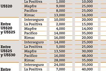 En el mercado, solo cinco empresas ofrecen el producto, entre ellas Pacífico Seguros, Rímac Seguros, La Positiva, Interseguro y Mapfre. Estas cobran una prima anual que fluctúa entre US$20 y US$35.