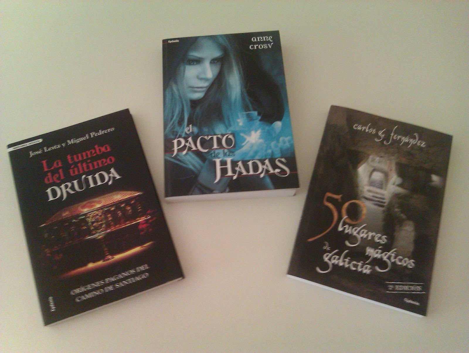 "El pacto de las hadas" de Anne Crosv"La tumba del último druida" de José Lesta y Miguel Pedrero"50 lugares mágicos de Galicia" de Carlos G. FernándezEstos tres ejemplares me los envió muy amablemente la Editorial Cydonia y en estos momentos me estoy leyendo el de "50 lugares mágicos de Galicia". Ya os comentaba en una entrada resumen de la semana que me estaba gustando mucho, me parece muy interesante y ademas tiene detalles que me han encantado. En breves reseña al canto.