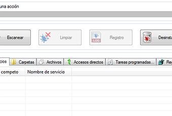 Al terminar con el escaneo nos permitirá seleccionar los elementos innecesarios (navegando entre las pestañas Servicios, Carpetas, Archivos, Accesos directos...) y que forman parte de estos Adwares o programas de publicidad molesta. Por defecto todos los encontrados son seleccionados. Una vez seleccionados los elementos que queremos eliminar hacemos clic en limpiar.