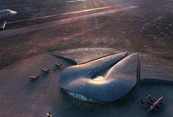 Desarrollada a partir del año 2006, es la propuesta ganadora de un concurso internacional para diseñar el primer aeropuerto espacial privado del mundo, la forma sinuosa del edificio en medio del paisaje y sus espacios interiores buscan capturar el drama y el misterio del vuelo espacial en sí.