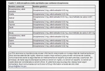 Uno de los medicamentos que está recetándose a estas mujeres es la drospirenona. El fármaco está en el punto de mira de la citada FDA.