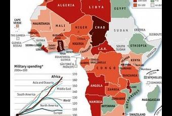 África tuvo el mayor aumento relativo en gasto militar en 2013 de todas las regiones del mundo, aumentó un 8,3 %, lo que hace un total de 44,9 mil millones de dólares. Si bien la tendencia regional tiende a estar dominada por unos pocos países clave, el gasto militar aumentó en dos tercios de los países para los cuales el Instituto Internacional de Estudios para la Paz de Estocolmo (SIPRI) tiene datos.