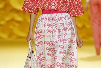 En la primera jornada de desfiles de la Mercedes-Benz Fashion Week nos presentó su nueva propuesta para la próxima temporada Agatha Ruiz de la Prada con un comienzo bastante light comparado con que la diseñadora nos tiene acostumbrados la pasarela se empezaba a llenar de color creando una colección muy "ponible". Jugando con el leitmotiv de la marca, linos, sedas rústicas, jacquards personalizados de corazón y estrellas, neoprenos o flecos se convertían en materiales para la experimentación. Un claro guiño a Miley Cyrus fue el look de vestido flotador que nos presentó, ¿cuánto tardaremos en vérselo puesto a la cantante americana?